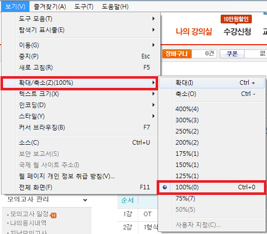 ÀÖ´Â ¸Þ´º Áß[º¸±â] - [È®´ë/Ãà¼Ò(Z)]¿¡ ¸¶¿ì½º¸¦ ¿Ã·Á ³õÀº ÈÄ,